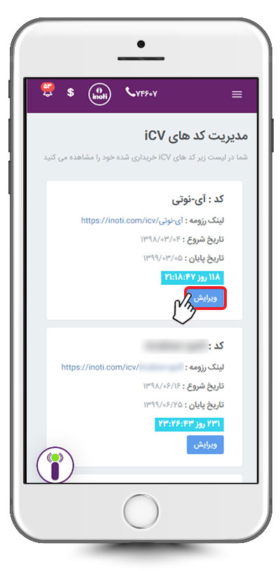 پس از آن شما شاهد صفحه‌ای خواهید بود که می‌توانید تمامی iCV های خریداری شده را مشاهده کرده و مدیریت نمایید.