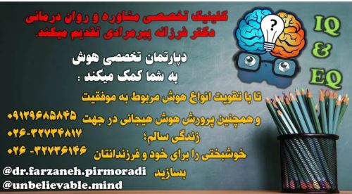 اگر می خواهید در این خصوص اطلاعات بیشتری بدست آورید، به کلینیک روانشناسی و روانکاوی دکتر فرزانه پیرمرادی مراجعه نمایید.