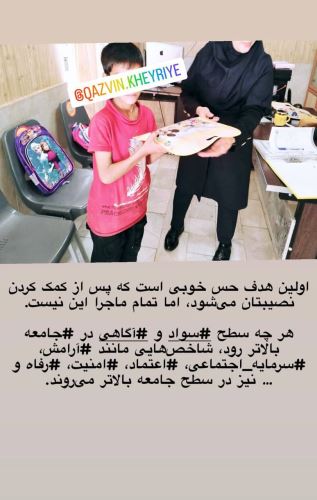 ما از هر فعالیتی در این زمینه کلیپ تهیه میکنیم و در صفحه ی اینستاگرام قزوین خیریه به اشتراک میزاریم تا شما اطمینان پیدا کنید که کمک هاتون جای درستی خرج میشود.