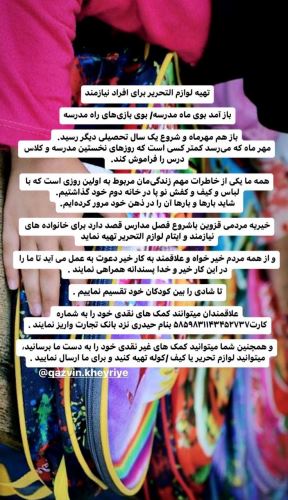 -دریافت و توزیع کمک های غیرنقدی توسط خیریه مردمی قزوین.