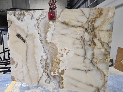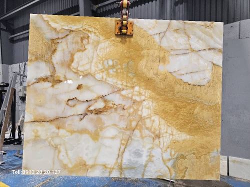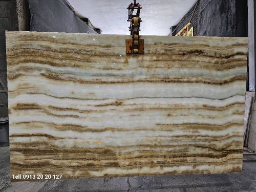 ⚪سنگ اونیکس: سنگ اونیکس نیز یکی از انواع سنگ اسلب بک لایت است که به دلیل شفافیت بالا، جلوهای خیره کننده به هر فضایی میبخشد.