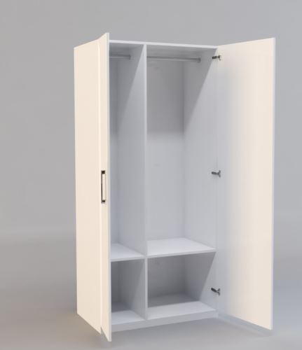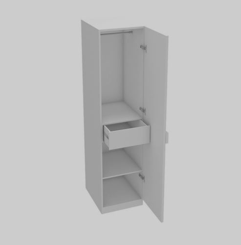 کمد ایستاده به ارتفاع 2 متر عرض 40 عمق 50 که بصورت ترکیبی یک محفظه برای آویز لباس به اندازه 120 همراه با آویز متری و 2 عدد کشو برای کفش و لوازم شخصی با یک درب یک تکه از جنس تمام ام دی اف می باشد.