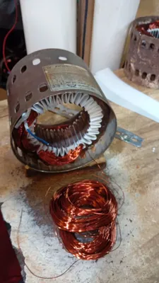اینجا باید حتماً یادت بمونه سیم اصلی و کمکی کدومه، چون بعداً اگه جای اینا قاطی بشه، موتور یا نمی‌چرخه یا سریع داغ می‌کنه. برای پیچیدن دوباره معمولاً از سیم مسی لاکی استفاده می‌کنن، ضخامتش باید همون اندازه قبلی باشه، نه زیادتر نه نازک‌تر. باید دقیق همون تعداد دور و همون جهت پیچیده بشه. وقتی تموم شد لاک مخصوص می‌زنن تا سیم‌ها ثابت بمونن و اتصالی نکنن. بعدشم می‌ذارن خشک بشه، موتور رو جمع می‌کنن و تست می‌گیرن. اگه نرم کار کرد و بوی عجیب نداد یعنی کار درسته.