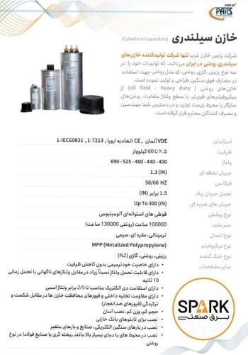شرکت پارس در راستای بھینه سازی مصرف انرژی و کاھش ھزینهھای برق صنایع کشور پیشگام بوده و تولیدات خود را در زمینه خازن اصلاح ضریب قدرت فشار متوسط ، فشار ضعیف، آب درگردش و بانکھای خازنی و تجھیزات وابسته دارد. کارخانهی این شرکت در ایران و ھند مشغول به تولید و ارائه محصولات پارس میباشند.