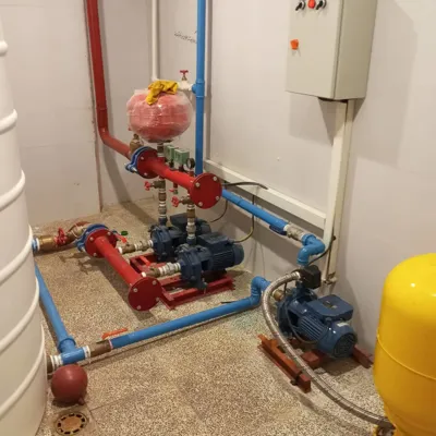 اجرای سیستم موتورخانه و تصفیه آب: این شامل نصب و تعمیر پمپهای آب، انواع کولر، چیلر و اسپلیت، و همچنین سیستمهای گرمایشی مانند پکیج است.