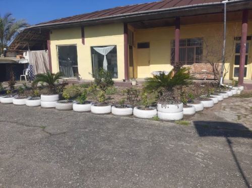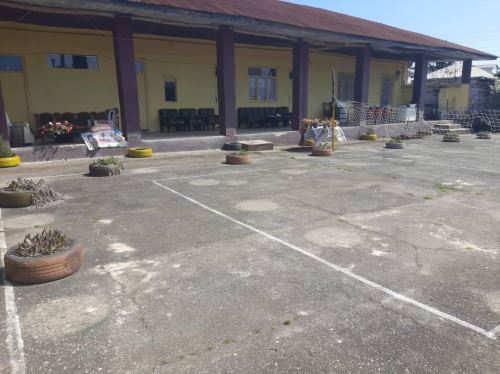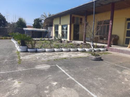 محوطه ایی بزرگ با گل و گیاهان سبز و پرندگان و ماکیان با زمین بازی و محل پارک خودروها ، محیطی زیبا و چشم نواز و امن را مشاهده میفرمایید .