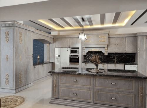 کابینتها از متریالهای مختلفی مانند امدیاف، هایگلاس، ممبران، چوب و فلز ساخته میشوند. هر کدام از این متریالها مزایا و معایب خاص خود را دارند. رنگ کابینت باید با رنگ دیوارها، کفپوش و سایر عناصر آشپزخانه متناسب باشد و اگر آشپزخانه شما کوچک است، باید از کابینتهای با رنگ روشن و طرح ساده استفاده کنید. درنهایت برای خرید جدیدترین مدل کابینت آشپزخانه باید بودجه ی خود را در نظر بگیرید قیمت کابینت ۱۴۰۳ به عوامل مختلفی مانند جنس، طرح، ابعاد و برند کابینت بستگی دارد. انواع کابینت را میتوان از لحاظ متریال، طراحی، رنگبندی، سبک و حتی نوع ابزارآلات تقسیمبندی کرد.نوعی کابینت آشپزخانه است که با الهام از سبکهای کلاسیک اروپایی مانند رومی، یونانی و فرانسوی طراحی و ساخته میشود. این نوع کابینتها ظاهری لوکس و مجلل دارند و برای آشپزخانههای بزرگ مناسب هستند. کابینتهای کلاسیک معمولاً از چوب طبیعی مانند بلوط، راش، گردو و یا امدیاف با روکش چوب ساخته میشوند. دارای طرحهای ظریف و پیچیده و جزئیات تزئینی مانند تاج، سرستون، گلدسته، منبتکاری و معرقکاری هستند که معمولاً در رنگهای تیره مانند قهوهای و مشکی تولید میشوند.