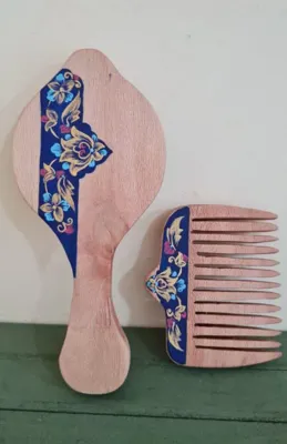 Mirror and comb completely handmade with plane wood, walnut, sparrow tongue and... With the desired design, pattern, size and model. آینه و شانه کاملا دست ساز با چوب چنار،گردو،زبان گنجشک و... با طرح و نقش و سایز و مدل مد نظر.