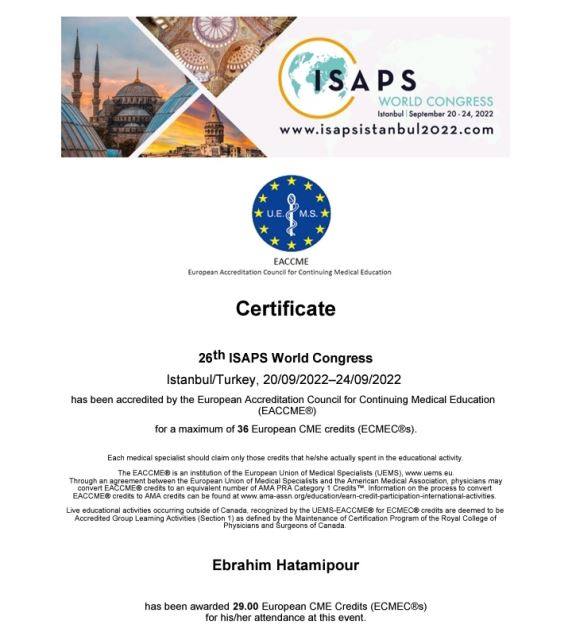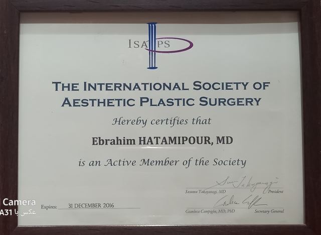 * عضو انجمن جهانی جراحان پلاستیک و زیبایی (ISAPS)