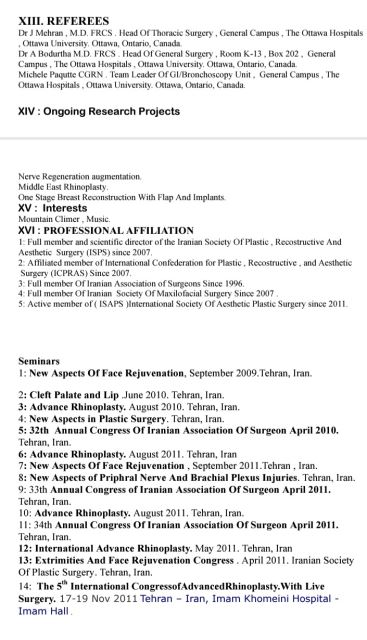 ماحصل 23 سال تجربه جراحی و صحبت و گفتگو با چند هزار بیماری است که آنها را در مورد عمل جراحی قرار داده ام من سعی کرده ام جنبه های مشاوره ای اعمال جراحی زیبایی را برای شما مطرح کنم شاید در چند جلسه مشاهده این مهم از اطلاعات را شما منتقل کنم این ت اکنون به صورت مکتوب در اختیار شماست بهتر است. آن را چند بار دقیقا مطالعه بفرمایید چون به رفع سو تفاهمات بین پزشک و بیمار کمک می کند. بزرگان جراحی دنیا می فرمایند. فوق تخصص جراحی پلاستیک و زیبایی در پزشکی خلاق حلال مشکل پایان دهنده و هماهنگ کننده تخصص های پزشکی از فرق سر تا ناخن با است چون کارا ابی ((ا) یک چهره زیبایی آن است مثل درست کردن شکاف لب و بینی فردی که سالها منزوی بوده است. افت پلاستیک به معنای شکل دادن و فرم دادن است. از همین رو ظروفی را که از یک ماده خمیری به اشکال مختلف در می آورند را ظروف پلاستیکی می کند. زیبایی یک مشعله ذهنی بسیار مهم در جهان مخصوصاً جامعه ایرانی است. )medis( گرچه رسانه مولی سلامت و زیبایی جامعه دانشگاه است و در کنار آن نظام پزشکی از جمله صدا وضیعا سیما روزنامه ها محلات در فرهنگ سازی زیبایی نقش مهمی دارند ولی ستون اصلی دانشگاه است. صوفان برای آگاهی از سلامت پزشکی و زیبایی از اطلاعات دوره درمان و سلامت و نظام پزشکی ارتباط داشته باشند. پزشکی زیبایی در جامعه ما ایران میدان تبلیغات بیشتری پیدا کرده لیکن هموطنان باید با مشاوره و آگاهی بیشتری تصمیم گیرند و پیشی گرفتن جراحی زیبایی بینی در کشور ما نسبت به کشورهای دیگر حواشی تبلیغات زیادتر و مسائل جنی است. ایران بالاترین جراحی بینی در تمام دنیا را دارد و معنا پزشک فوق تخصص جراحی پلاستیک و زیبایی که دوره آکادمیک سه ساله فوق تخصص جراحی پلاستیک و زیبایی را بعد از تخصص در جراحی 5-2/5 ساله گذرانده و توان لازم و مهارت مقتضی جهت ساختن بینی و در نظر گرفتن تمام نکات کلیدی از نظر حفظ راه هوایی و با توجه به مواجهه با حجم بسیار زیادی از موارد آسیب دیده بر اثر سواح سوختگیها و آسیب های شیمیایی و عوامل محیطی که منجر به تخریب کامل صورت و بینی می شوند. بدون شک مسئول بازسازی این عوامل پیچیده به جز جراحان پلاستیک و زیبایی هیچ گروه تخصصی دیگری نیستند و اینکه تداعی شده است که جراح پلاستیک صرفا به زیبایی اهمیت می دهد و به عملکرد بینی توجهی ندارد. اشتباه است. توانایی علمی و عملی کافی تجربه و مهارت مناسب عامل اصلی تعیین کننده موفق بودن جراح و نتیجه بهتر عمل است به نام تبلیغات و میزان هزینه عمل جراحی افراد باید با تحقیق مناسب پیش از اینکه تحت تاثیر تبلیغات و آگهی های پراکنده غیر اصولی قرار گیرند تصمیم بگیرند.