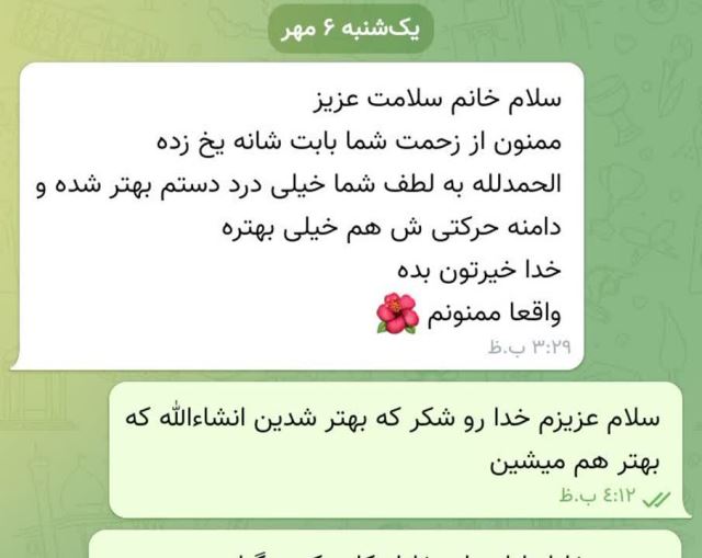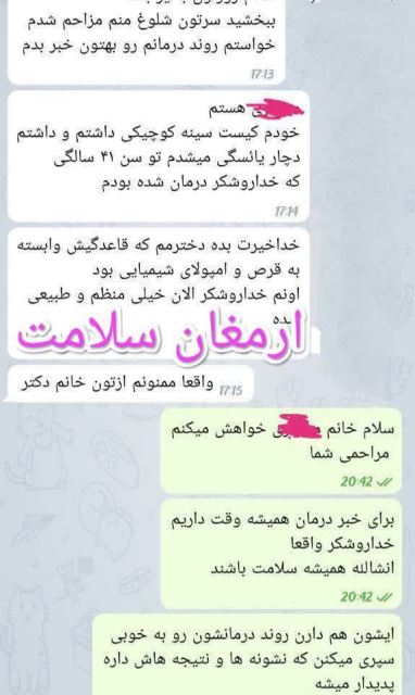 بنده خیلی در این شغل موفق بوده ام و خیلی علاقه دارم که برای مردم کشورم بتونم کاری کنم و بوسیله ی بنده درمان شوند.
