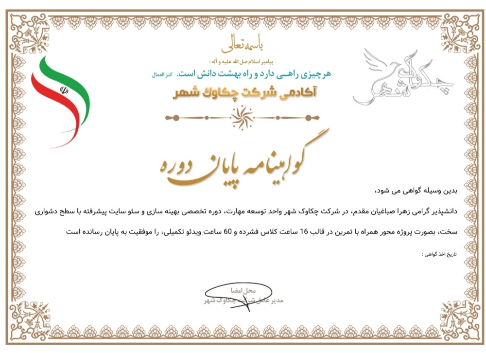 جهت دریافت اطلاعات کلمه [ زهرا صباغیان]