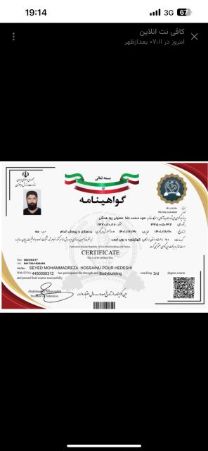 دارای مدرک درجه B کار با دستگاه های بدنسازی