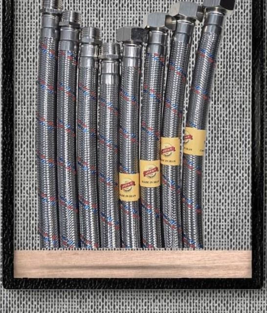 ✅شلنگ های حصیری مهره برنجی شرکت آداک با روکش استیل