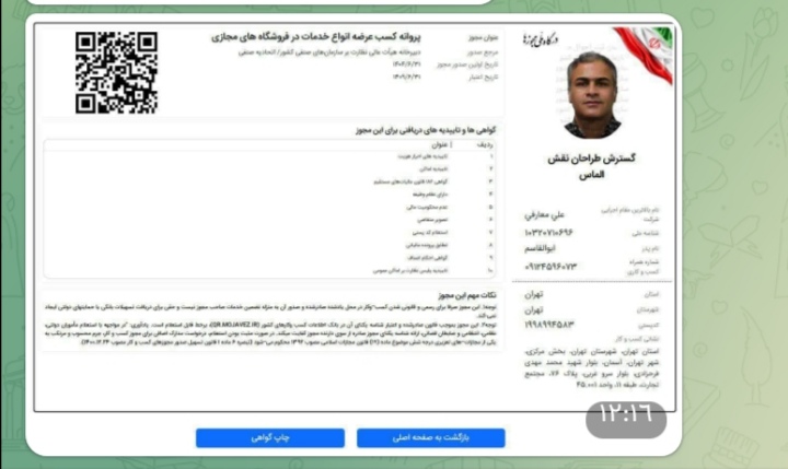 1404/09/03 پروانه کسب گسترش طراحان نقش الماس