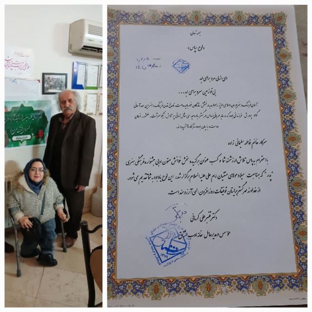 1400/09/01 دریافت لوح تقدیر از رئیس محترم اداره فرهنگ و ارشاد اسلامی محترم پاکدشت