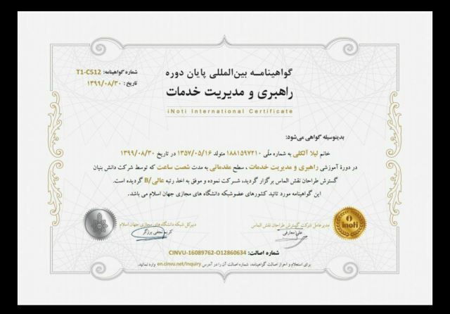 1399/08/16 گواهینامه بین المللی راهبری آینوتی از دانشگاه های مجازی جهان اسلام در 57 کشور