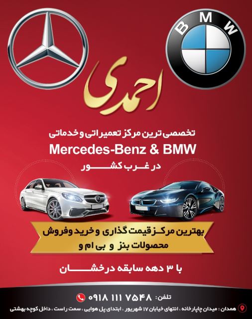 1374/10/01 تا --تعمیرگاه مجاز بنز و بی ام و در استان همدان انجام کلیه سرویس های دوره ای عیب یابی با دستگاه دیاگ بنز و بی ام و تعمیرات تخصصی یونیت های برقی کامپیوتر (ecu) پروگرام کدینگ یونیت های برقی بصورت آنلاین