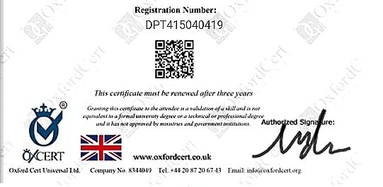 دارای مدرک بین المللی روانشناسی از دانشکده آکسفورد انگلستان